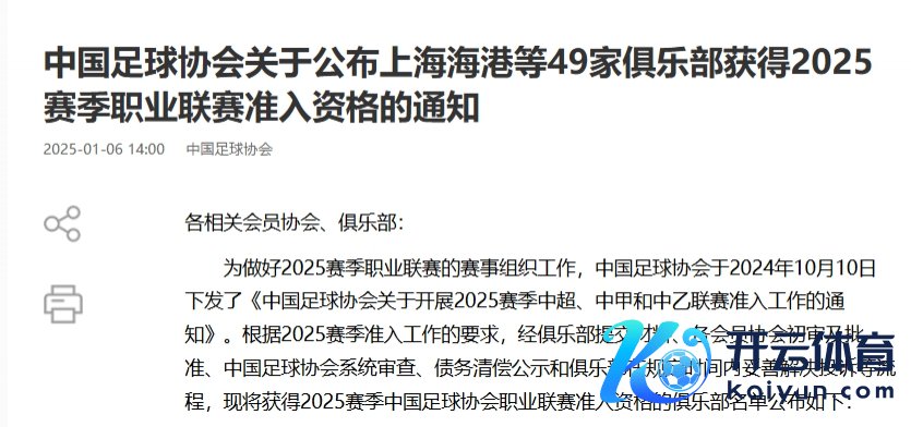 北青体育记者肖赧写说念:今天足协公布的官方见知里莫得“公示”字样,也等于说,不在列的俱乐部,如无偶而体育集锦,是无缘新赛季联赛的。很缺憾!不但愿看到这么的成果。