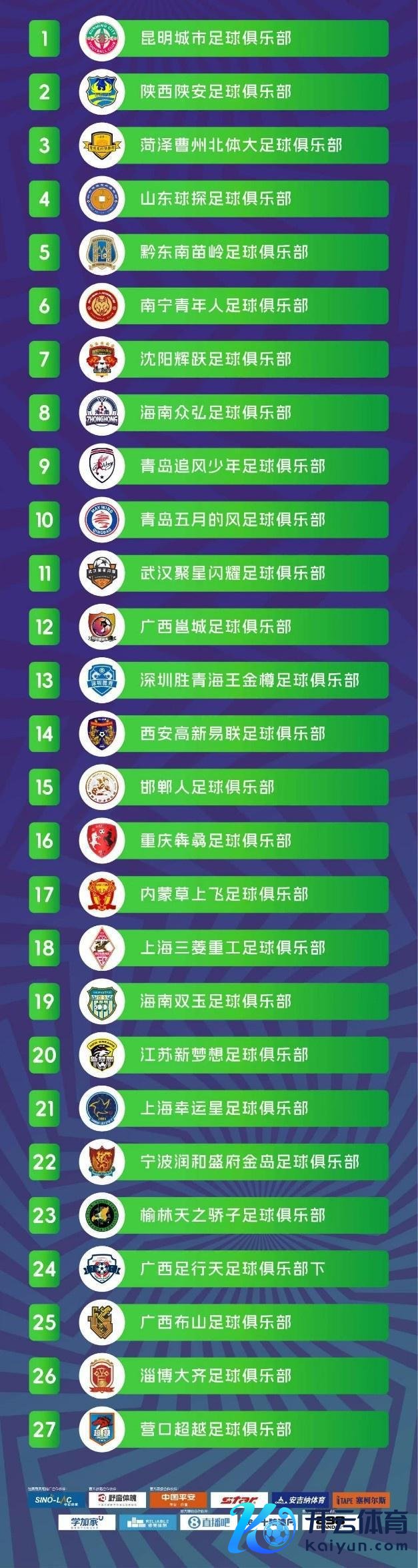 得到表扬的 27 家俱乐部如下图所示: