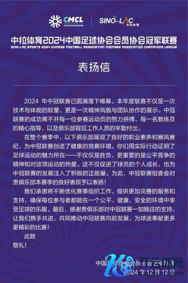 直播吧 1 月 3 日讯 官方音信,因为赛风赛纪阐扬精粹,中国足协特向昆明城市等 27 家中冠俱乐部发表扬信。原文如下: